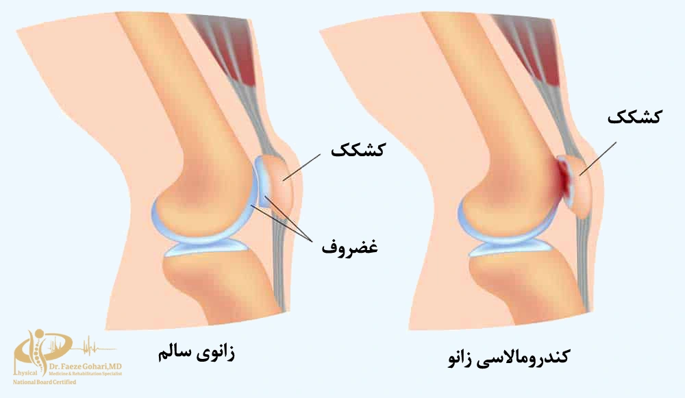 کندرومالاسی کشکک به وضعیتی گفته می‌شود که در آن غضروف پشت کشکک (پاتلا) دچار نرم‌شدگی، ساییدگی یا تخریب جزئی می‌شود. این مشکل معمولاً در افراد جوان‌تر، به‌ویژه زنان و ورزشکاران، بیشتر دیده می‌شود و یکی از دلایل شایع درد جلوی زانو، به‌ویژه هنگام بالا و پایین رفتن از پله، نشستن طولانی یا زانو زدن است. ناهماهنگی حرکتی کشکک، ضعف عضلات چهارسر ران، یا ضربه‌های مکرر از علل رایج این اختلال هستند.