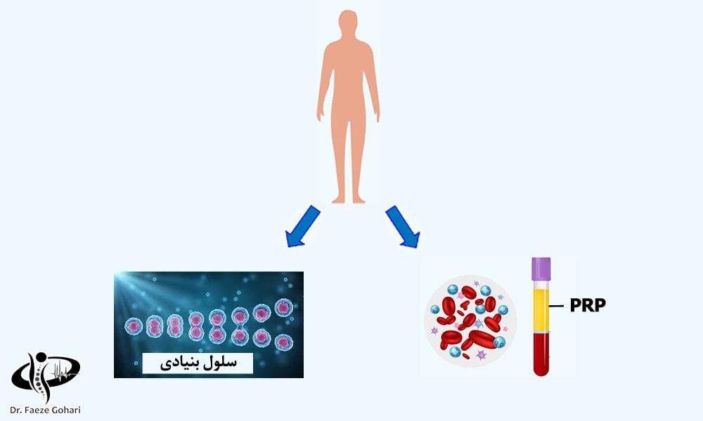 پی آر پی (پلاسمای غنی از پلاکت) از خون خود بیمار در کلینیک استخراج شده و 5 تا 10 برابر غلیظتر از پلاکتهای طبیعی بدن است. در مقابل، سلولهای بنیادی از بافت چربی، استخوان یا بند ناف جنین به دست میآیند و بهصورت ویالهای آماده از بانکهای سلولی قابل تهیه هستند.